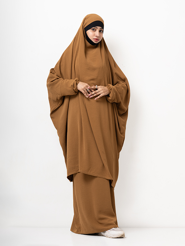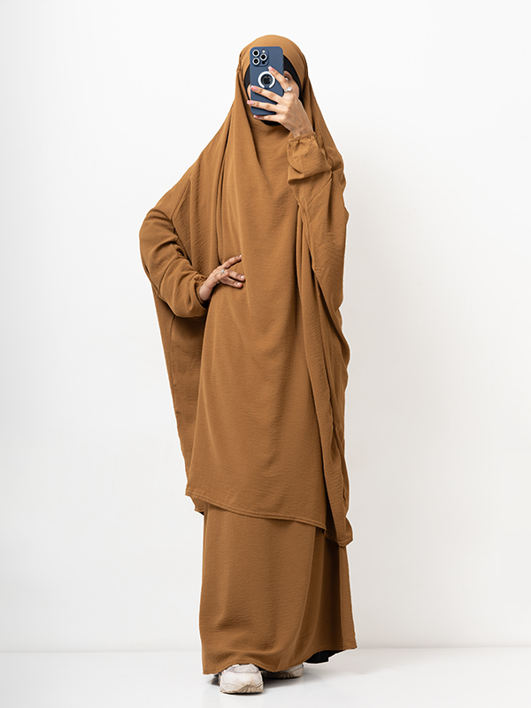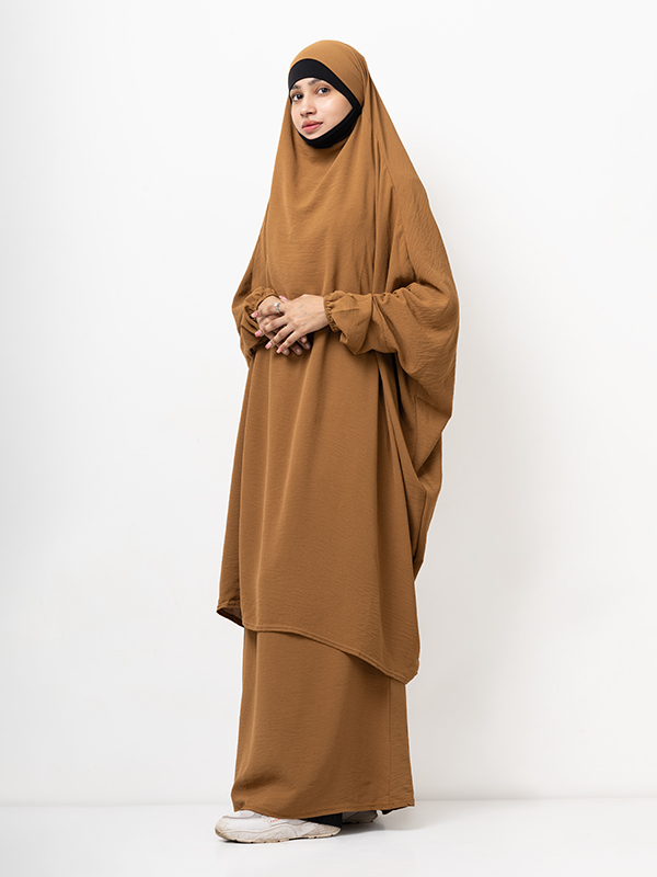 Eleganter Jilbab aus Dubai – Camel / Kamel – Zweiteiliges Set aus Viskose