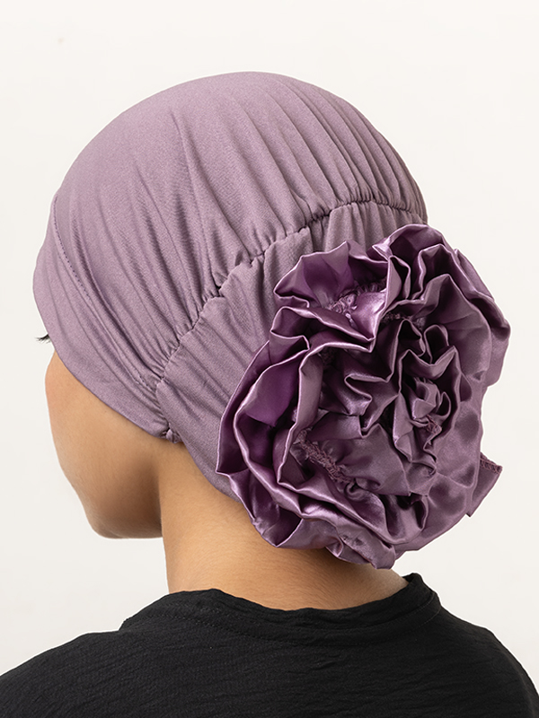 Satin Bonnet mit Blumenverzierung für Islamische Mode
