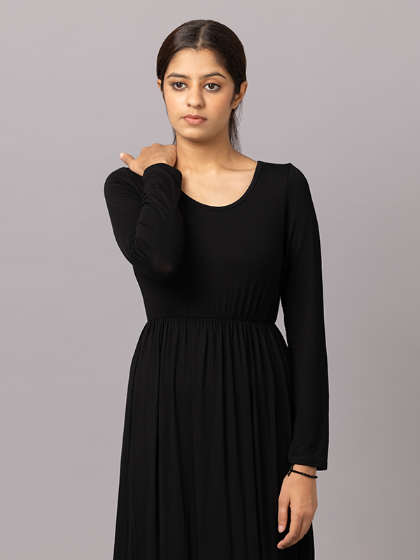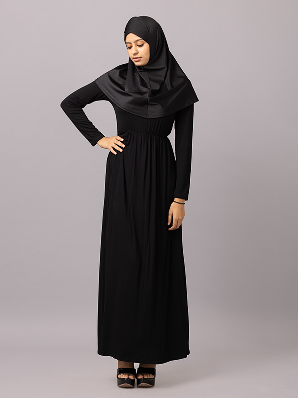 Ob solo getragen oder als Unterkleid kombiniert mit Kimonos, offenen Abayas oder Cardigans – dieses Kleid ist ein funktionales und modisches Basic für jede Garderobe.